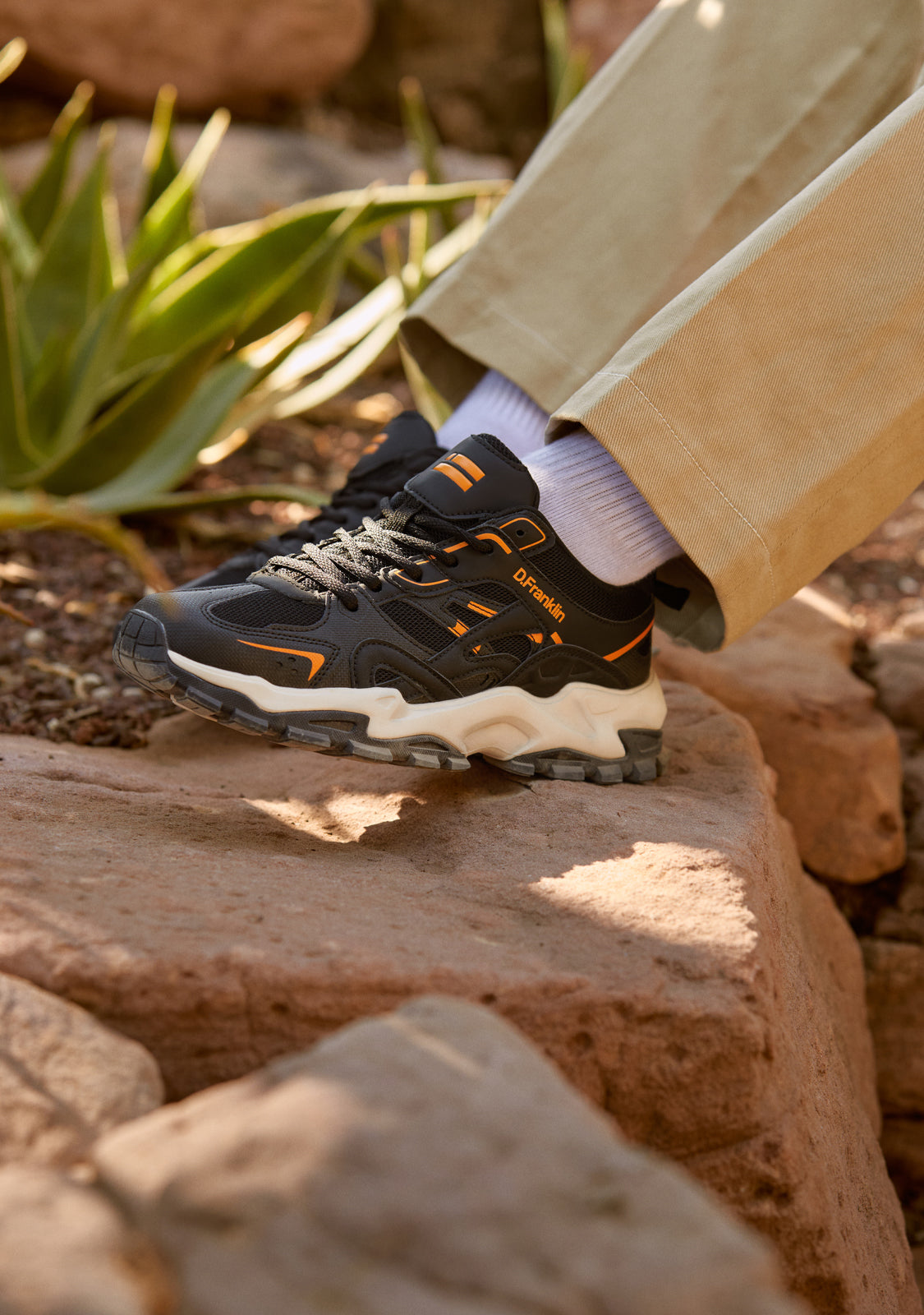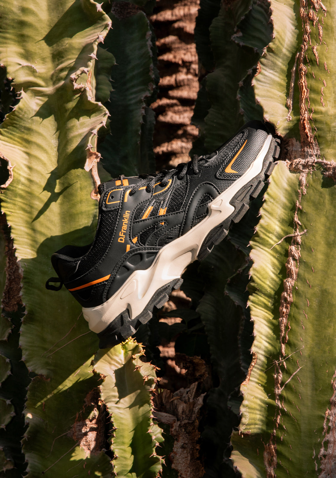 D.Franklin track style sneakers. We channelled the nostalgia of the nineties into an updated design. Textures, colours and finely tuned details fuse together to create a contrasting aesthetic.