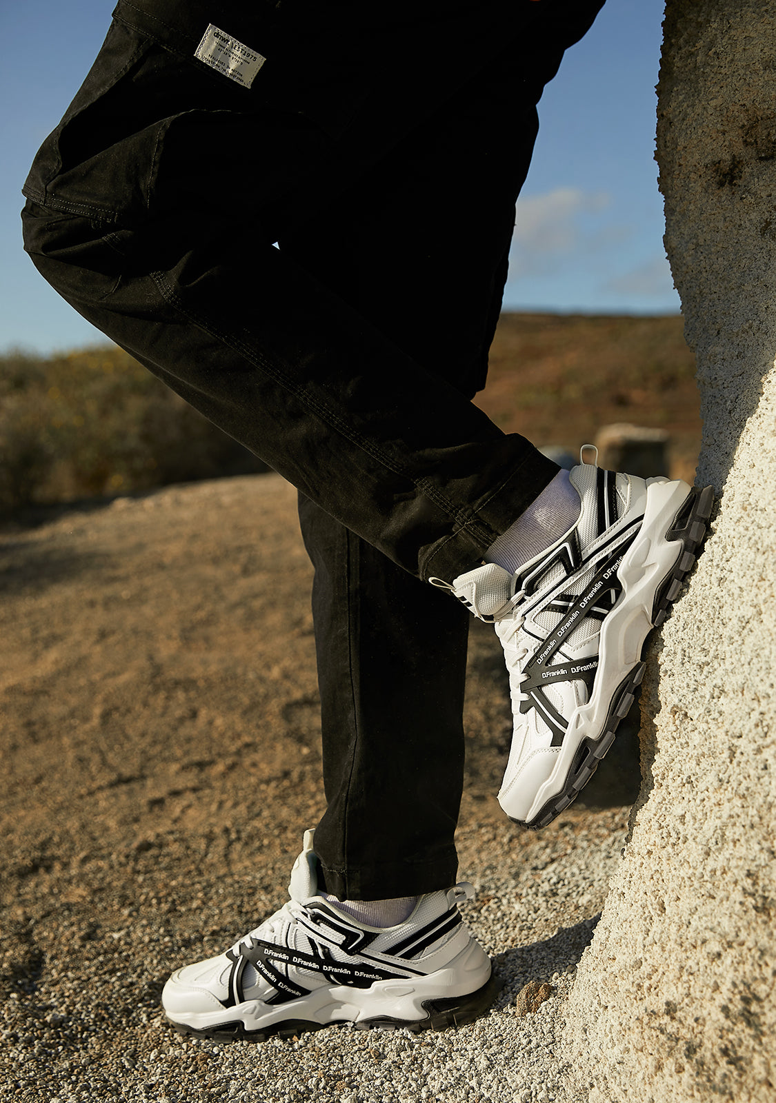 Model 347 is born to discover and explore. Ready to flow in the face of any challenge. Its high grammage nylon mesh and dual density TR sole lead to the creation of a new form of expression. City and mountain in the same place. Plus, created through PETA Approved-Vegan materials, microfiber and technical material pull tabs.