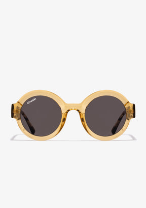 Round-frame sunglasses with a transparent finish in brown tones. A distinctive piece for your most daring outfits.