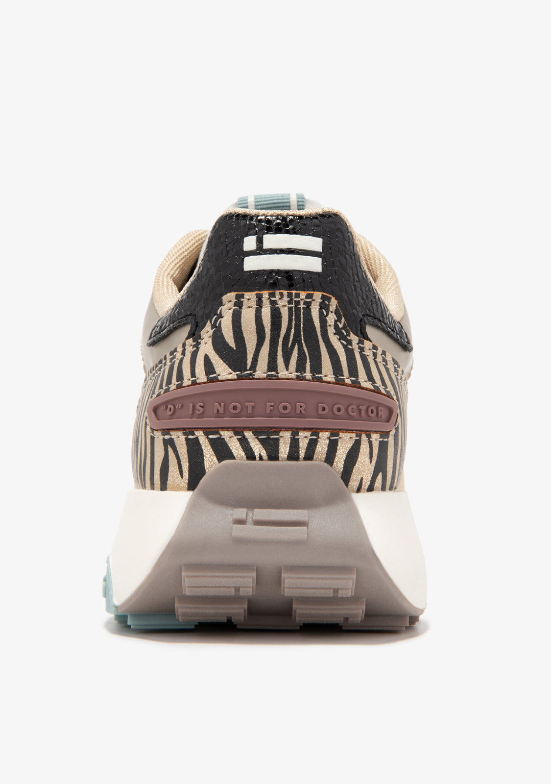 This model fuses different textures with golden and beige tones that highlight its uniqueness. It features the D.Franklin flag on the side and printed laces for a perfect fit. In addition, it has a two-density sole. The first one is made of recycled materials for a comfortable and light tread, and the second one is embossed to provide grip.