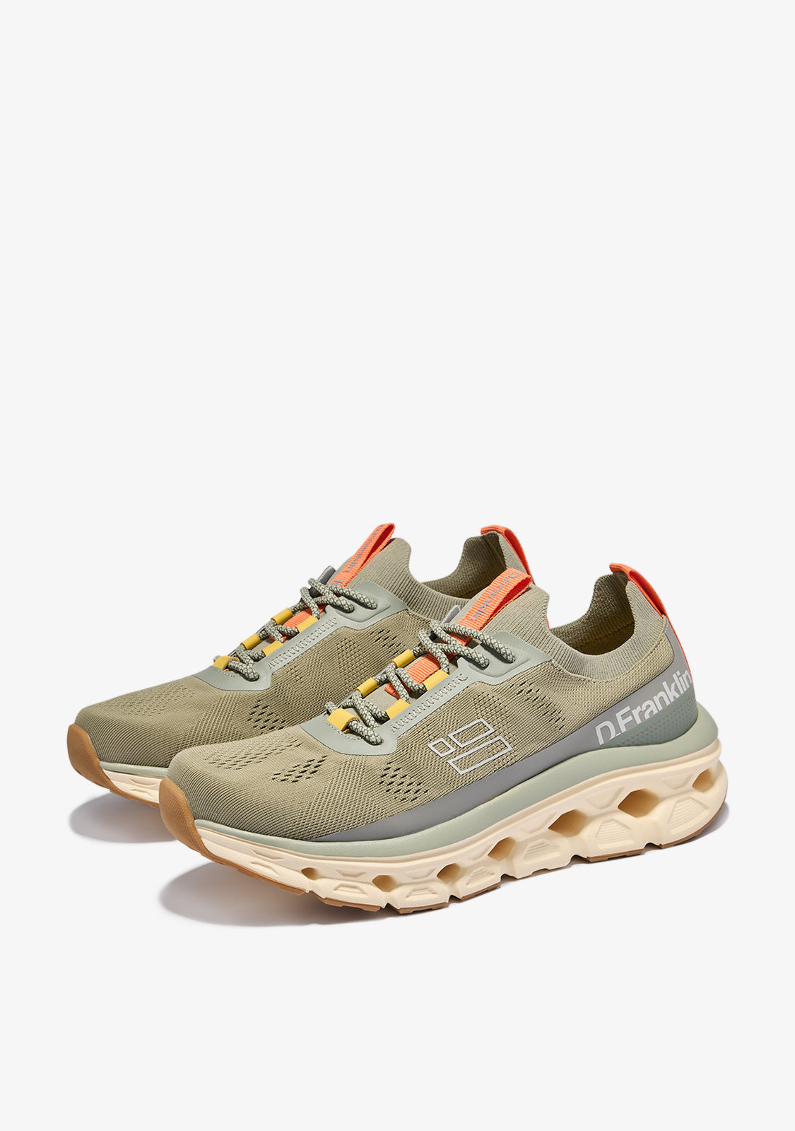 The Aero Matcha Green by D.Franklin are designed for running and daily training, with a regular fit and lace-up closure for a secure hold. The platform sole delivers a stable lift, backed by the Biomechanical Run Comfort Validation.