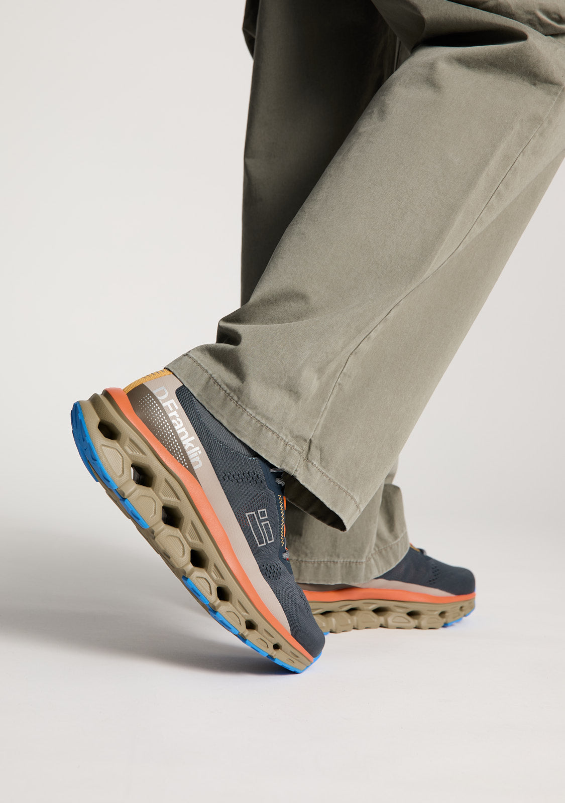 The mesh exterior, combined with synthetic details, provides excellent breathability and lightness. The inner lining, made of technical fabric, keeps the feet comfortable all day, while the 100% synthetic insole enhances comfort. The solid rubber sole ensures a firm and stable step.