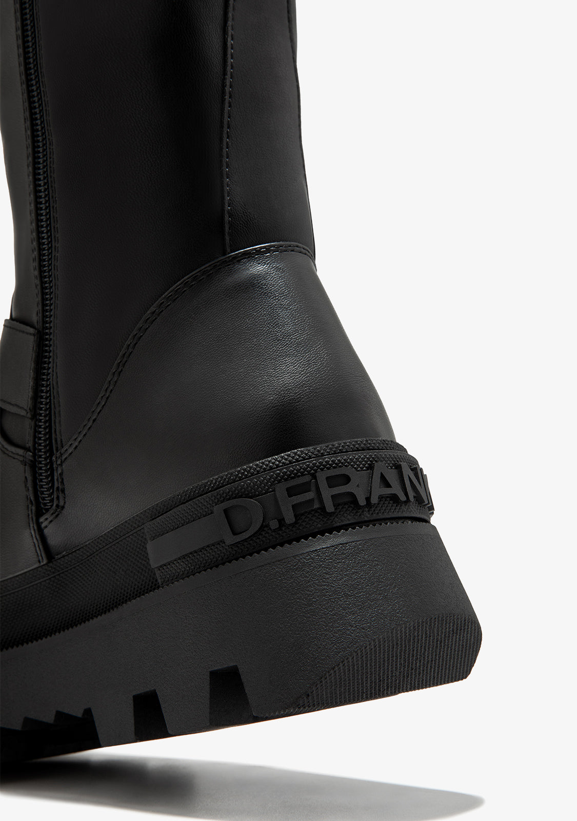 This D.Franklin model in black features an inner zipper on one side for a perfect fit. Its track-style sole provides unmatched grip. It features our logo and emblem embossed on the wedge and toe. Additionally, it has the iconic buckle details on the lower and upper part, adding to its characteristic aesthetic.