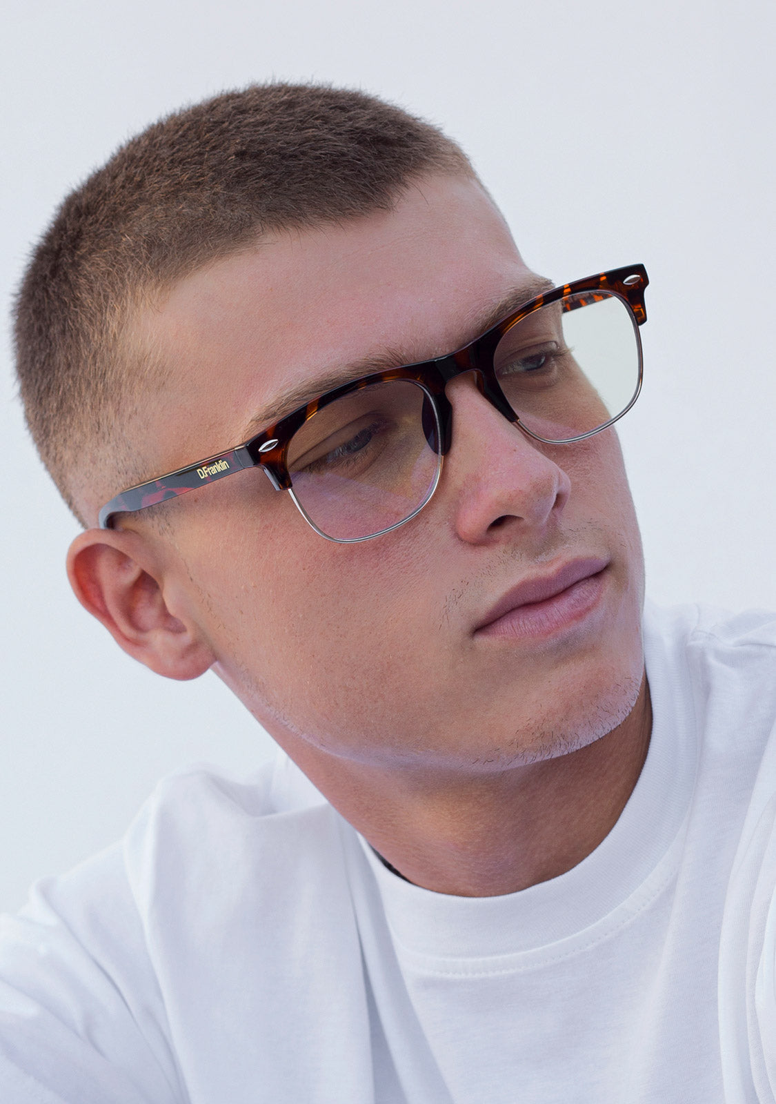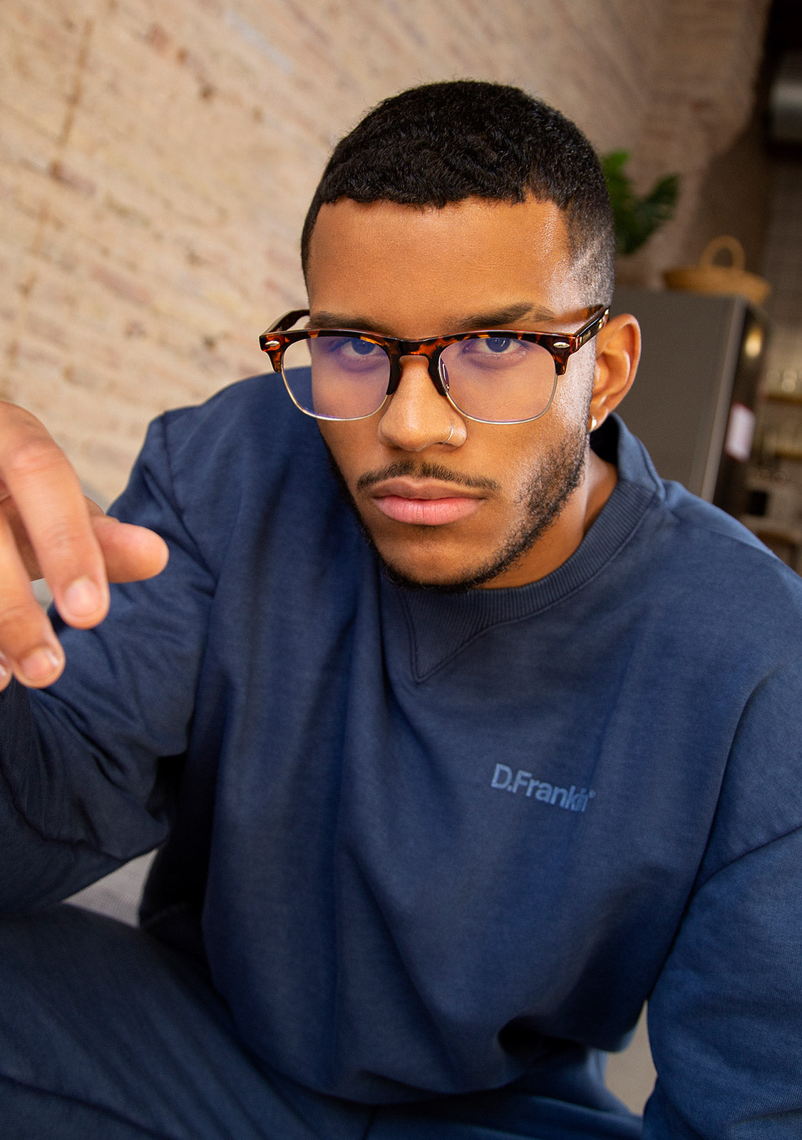 The semi rimless frame and shiny effect of the D. Franklin´s America SQ Carey / Blue Block glasses make this style unique.