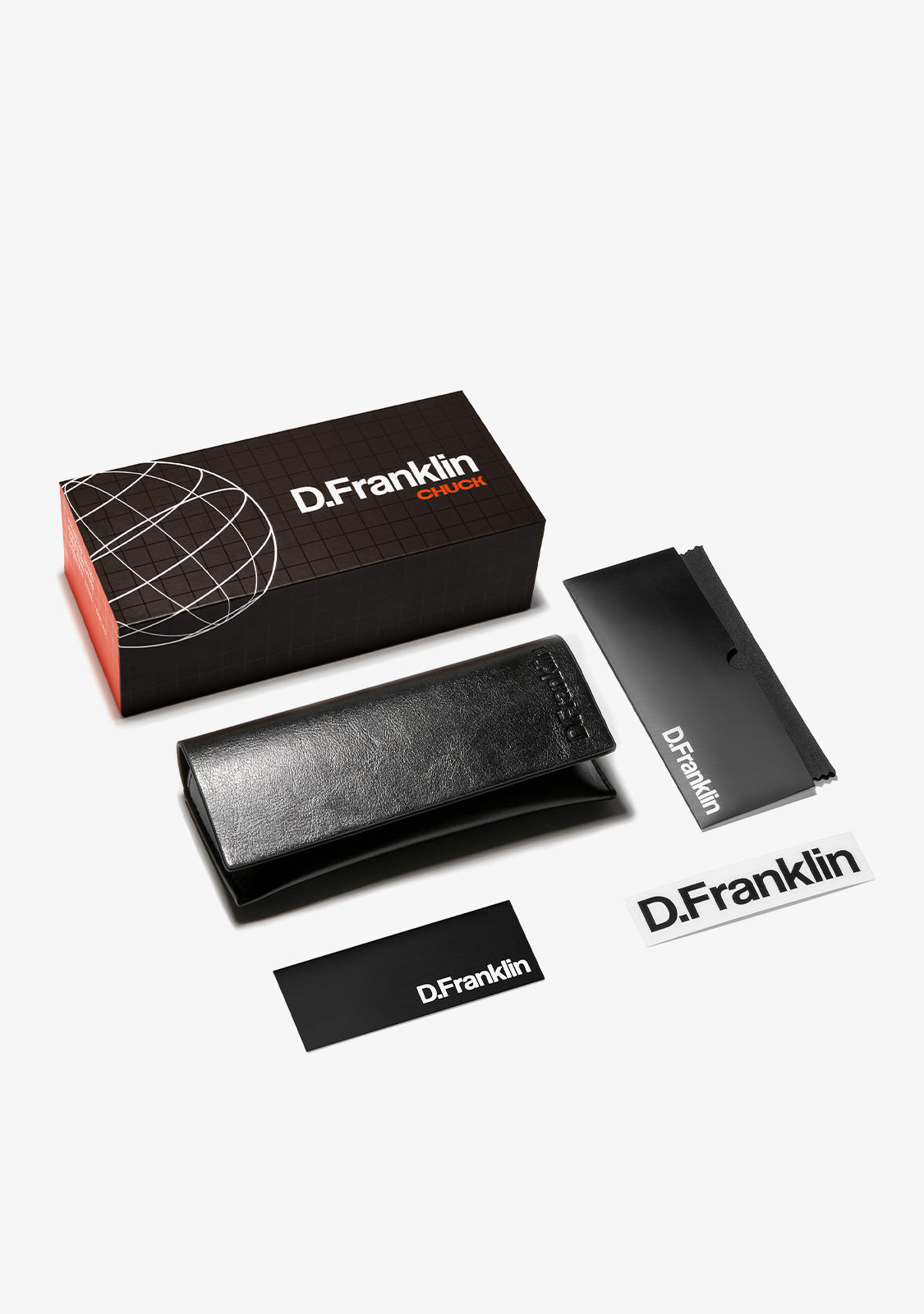 Our blue Chuck features signature D.Franklin details, engraved logo on the temples and emblem on the lens. The lens width is 50mm and the front is 140mm. The side temples have a length of 145 mm which is suitable for all faces.