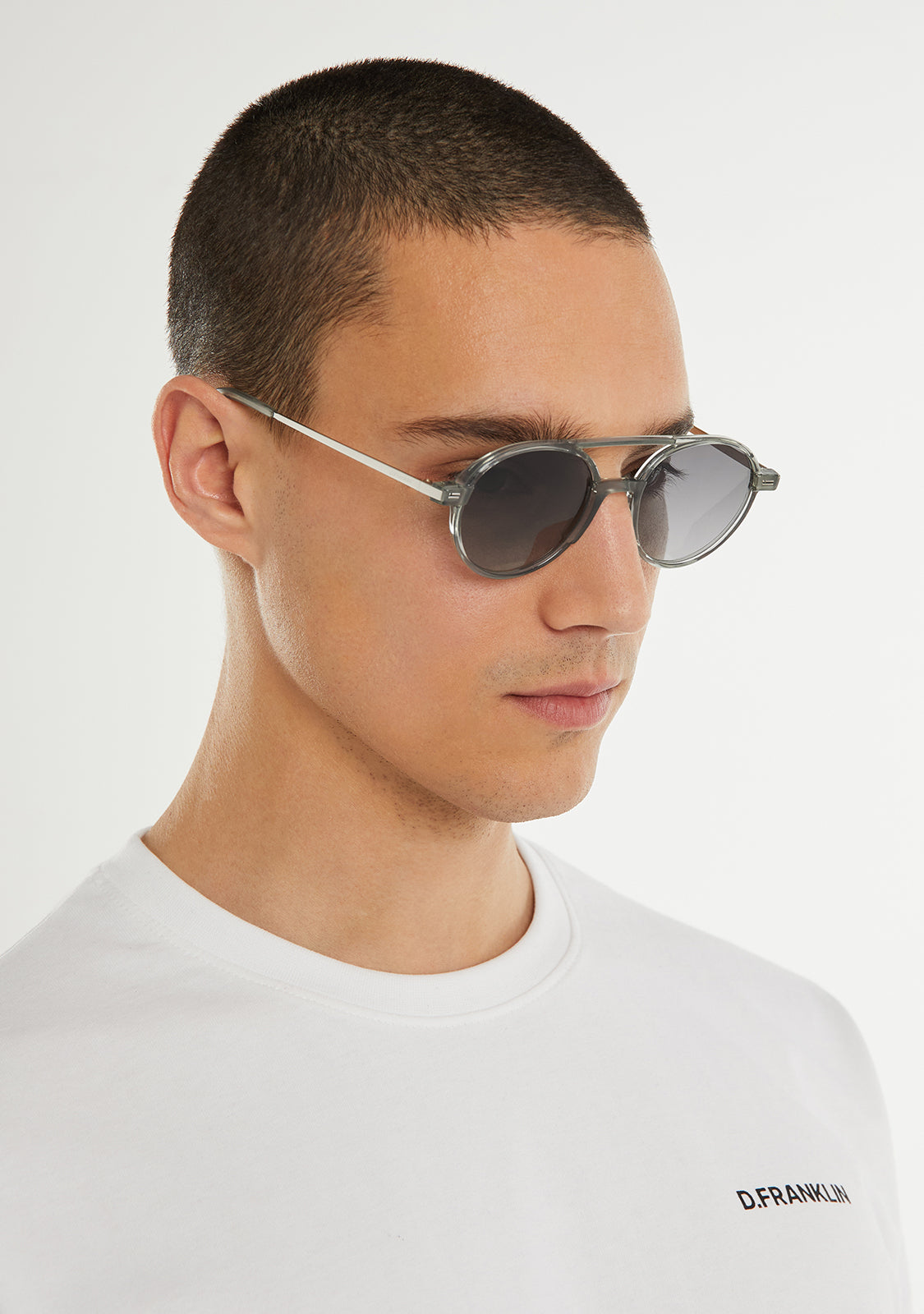 Our gray-toned Chuck features signature D.Franklin details, engraved logo on the temples and emblem on the lens. The lens width is 50mm and the front is 140mm. The side temples have a length of 145 mm which is suitable for all faces.