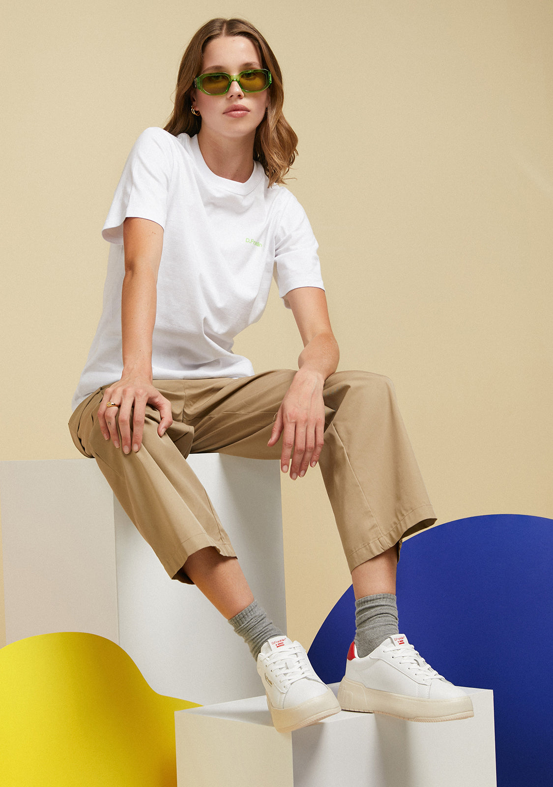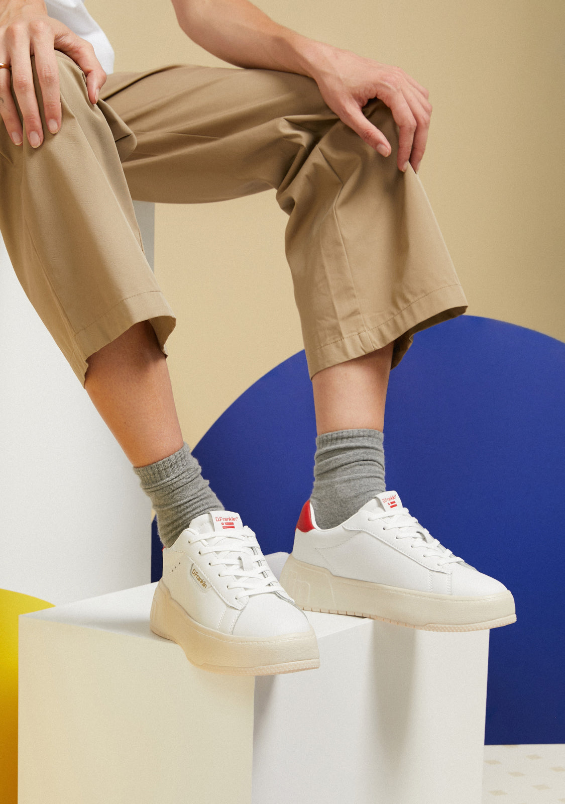 Minimal trainers with a sporty inspiration. Our iconography's iconic design transcends the court and hits the streets. Connect your D.Franklin aesthetic with a retro-cut emblem and simple detailing.