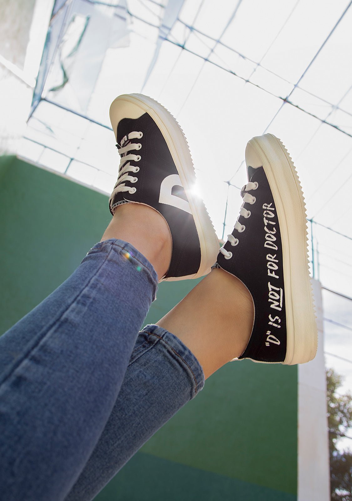 The D. is not for Doctor collection is the perfect combination of comfortness and casual style. The D. is not for Doctor Black / White represents the D.Franklin style thanks to the popular rounded toe and exterior made of white canvas