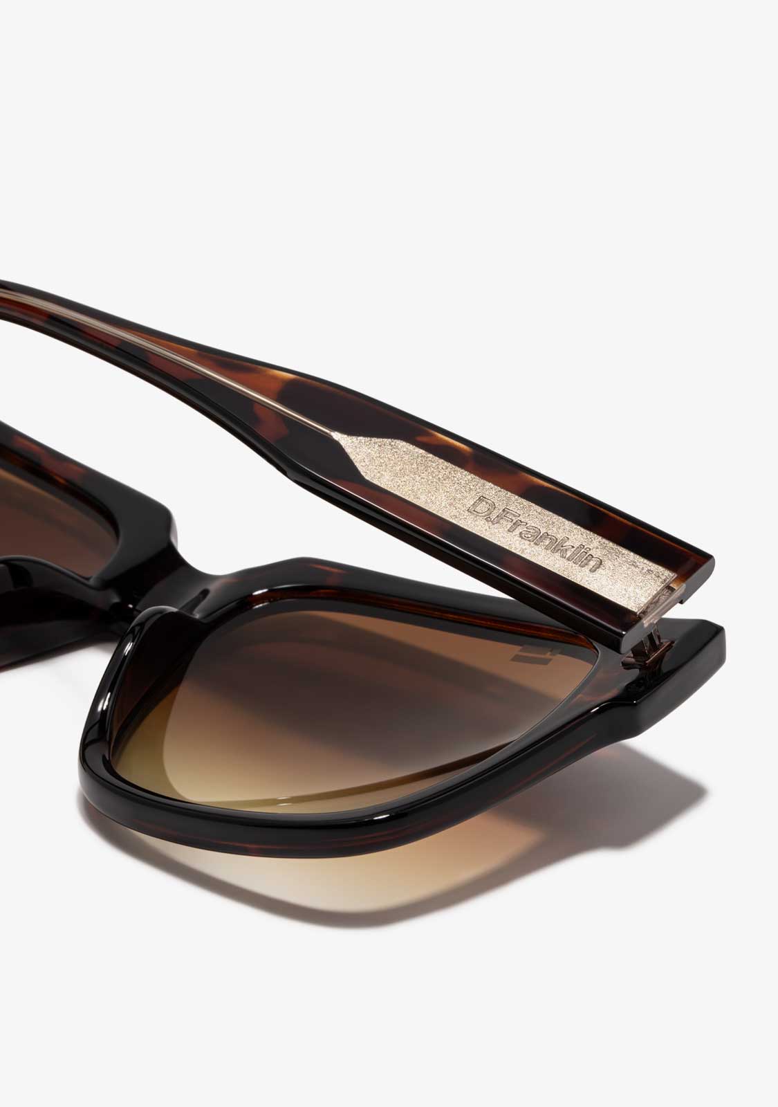 Our Milky Demi model in brown represents the uncommon side of D.Franklin, the logo engraved on the temples and the emblem on the lens. The lens width is 55 mm and the front 150 mm. The side temples are 145 mm long, suitable for any type of face.