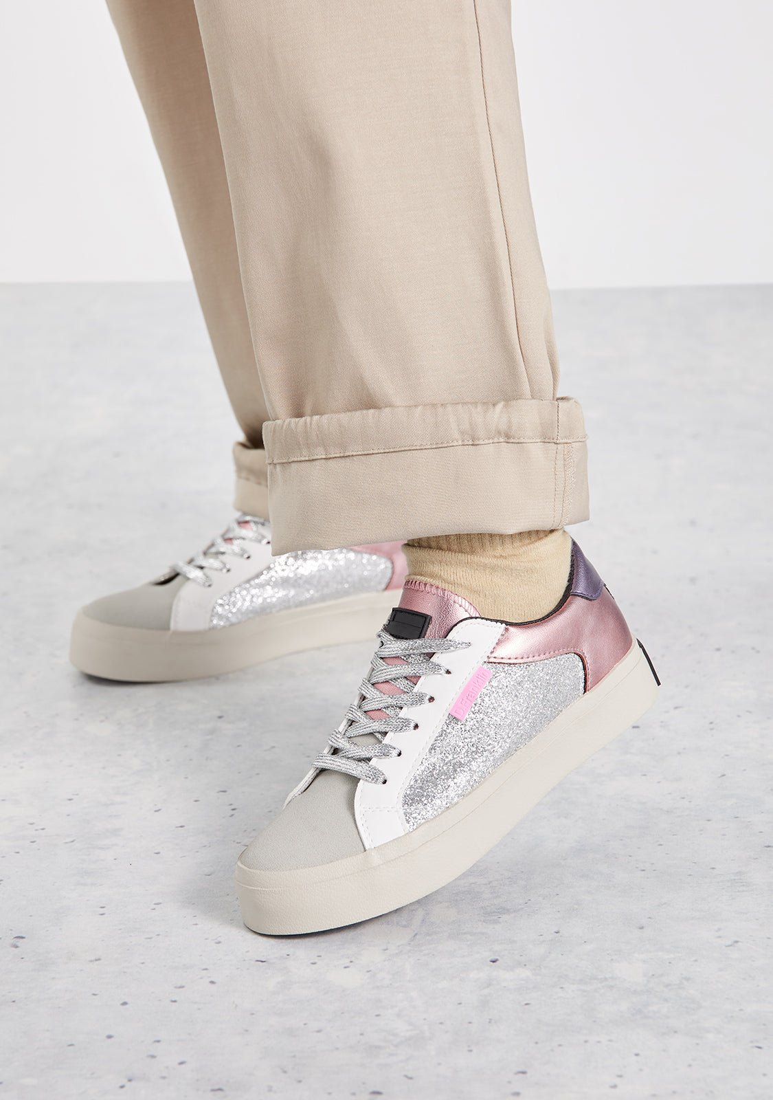 Low-cut sneakers with shiny details. A design with metallic finishes inspired by cosmic colours.
