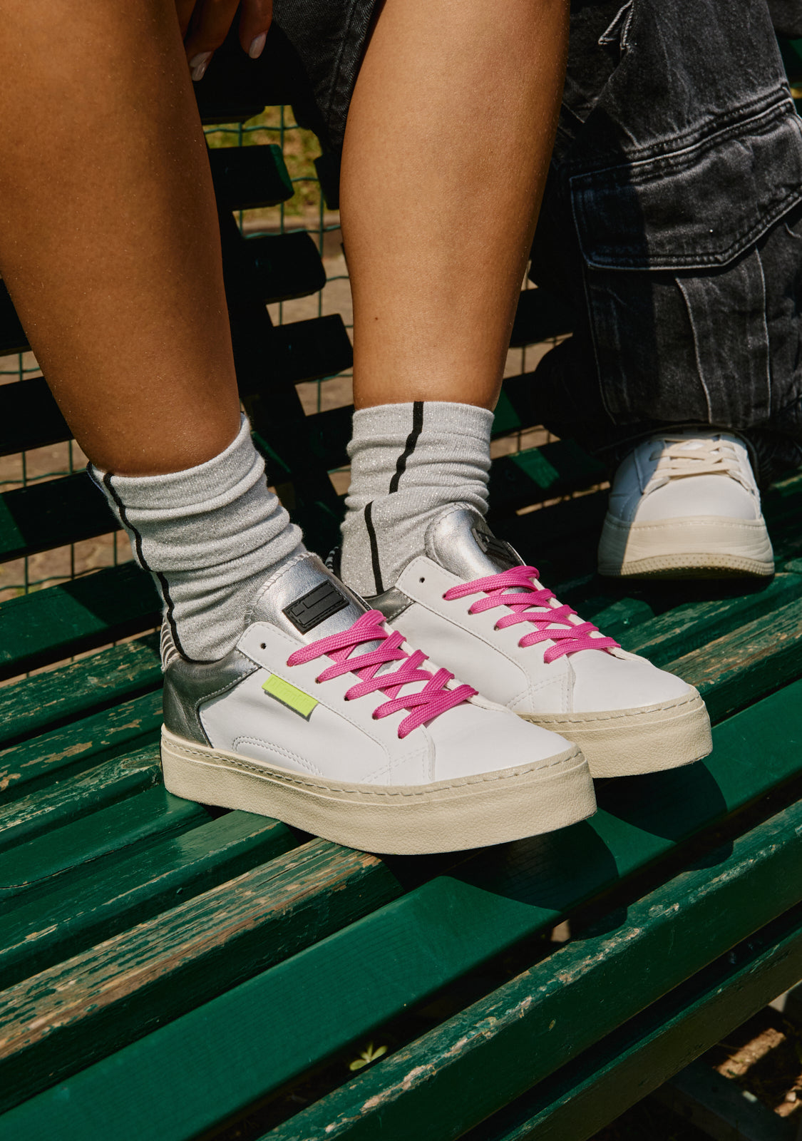 Low-cut sneakers with shiny details. A metallic finish design inspired by cosmic colours.