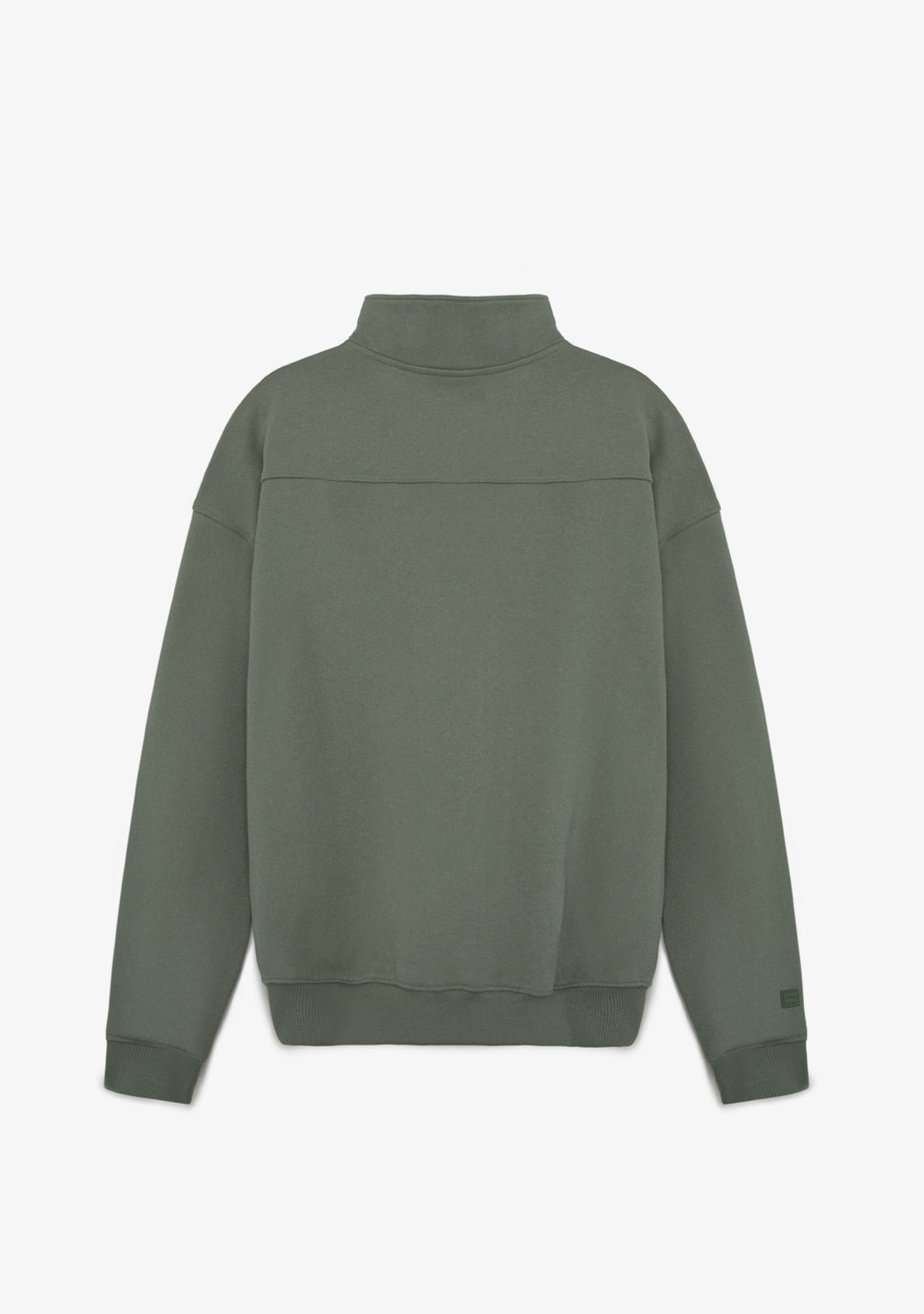 Half-Zip Sweatshirt Sage Green is a unisex sweatshirt that combines comfort with modern structure. The half-zip collar adds flexibility to your fit, while the defined seams break the plainness for a more dynamic look.
