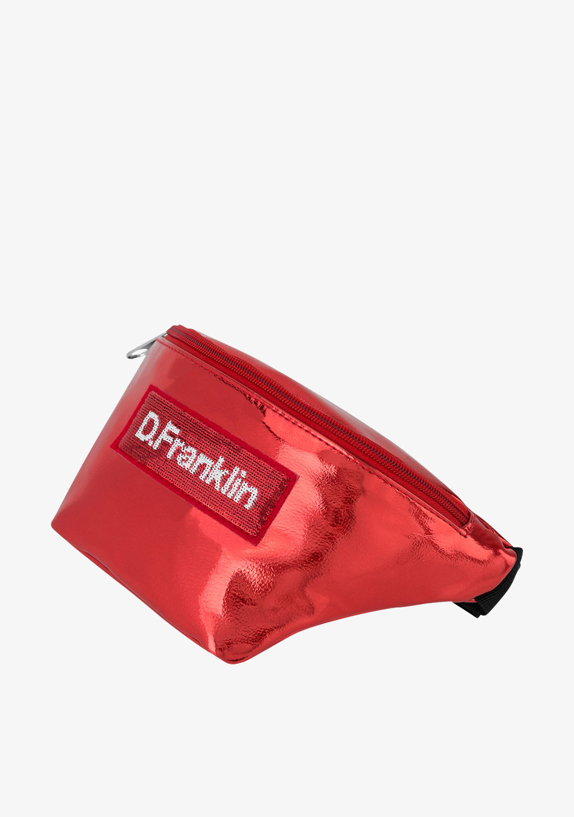Waist bag in metallic finish and D.Franklin logo in sequins.