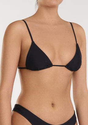 Discover the Kai Top Black, the perfect bikini top for those looking for style and comfort at the beach or pool. Its triangle design with medium coverage enhances your figure without sacrificing freedom of movement. Made from stretchy and durable fabric (82% Nylon, 18% Elastane), it adapts to your body for a comfortable, secure fit.