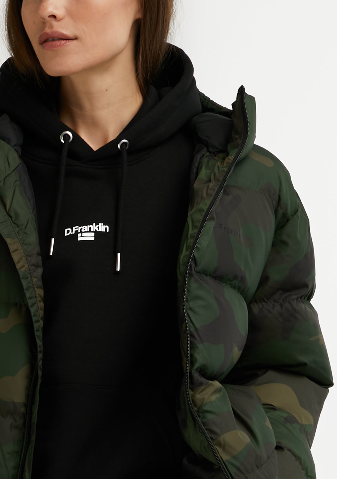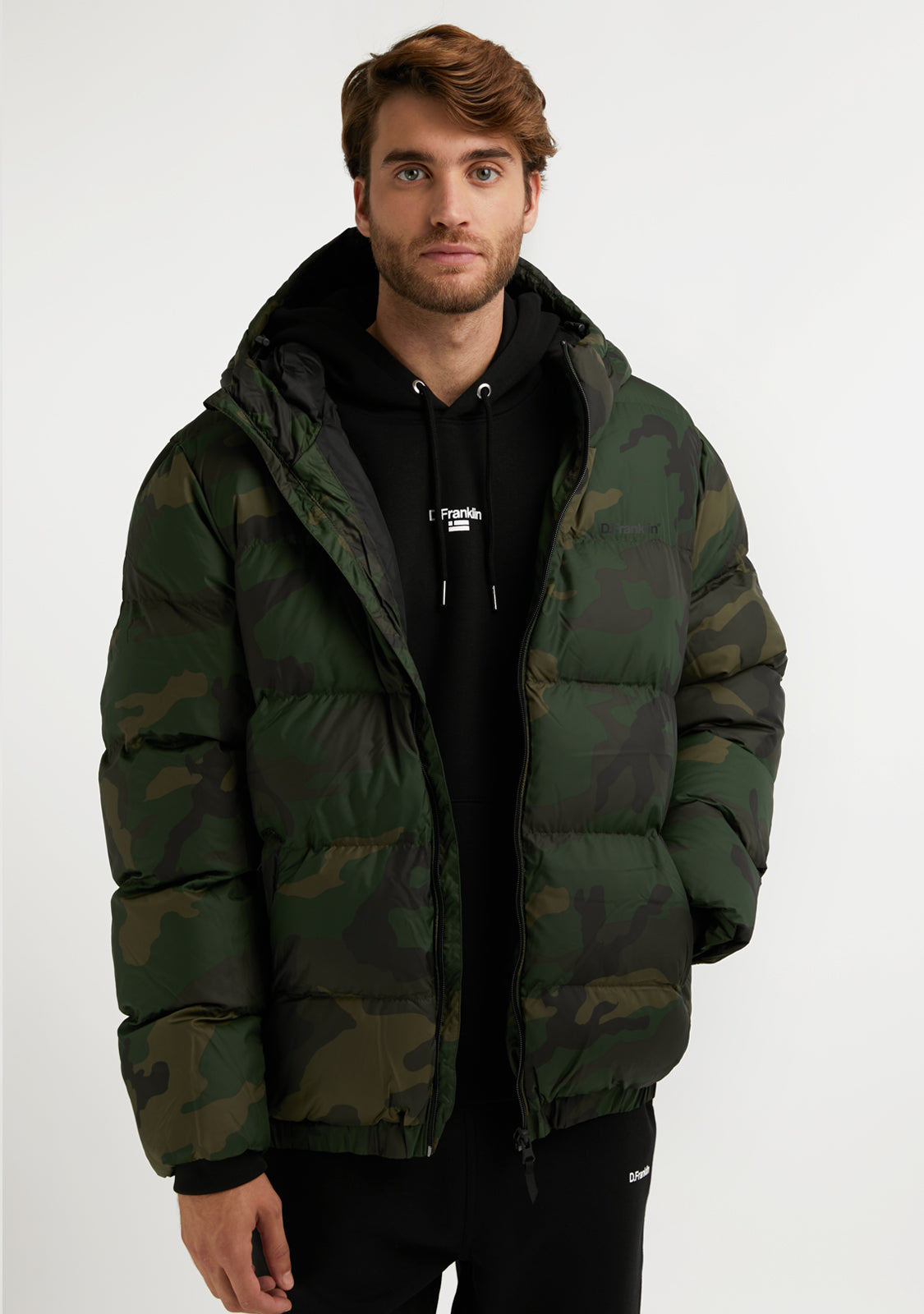 Don't miss our new collection of jackets! The Logo Puffer Camo combines style and comfort, without losing the D.Franklin essence. Close-fitting sleeves and ribbed cuffs. Adjustable lined hood. Centre front zip fastening with chin guard. Two side pockets and inside chest pocket, all with zip. Fill your looks with style and don't let the cold weather stop you!