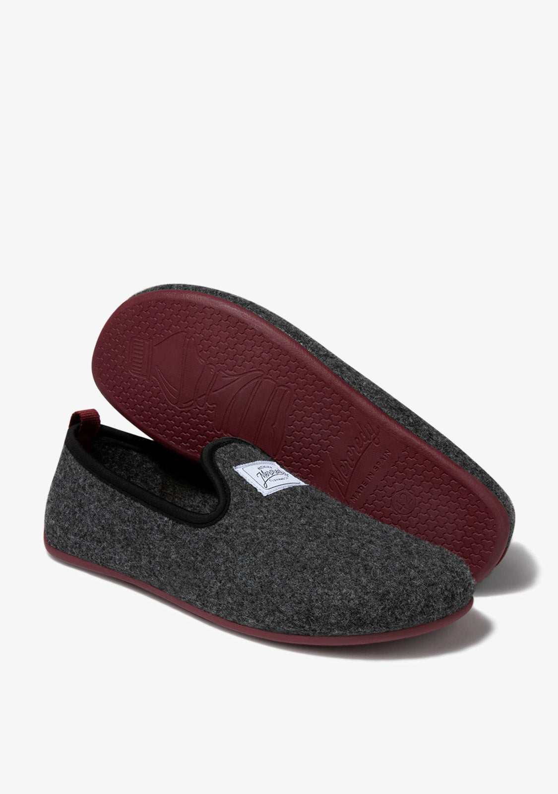 Sustainable comfort is here. The new Slipper collection by Mercredy arrives to create shoes for home designed from recycled materials. They are made of a comfortable and light fabric, with a breathable textile fiber insole, as well as a non-slip rubber sole. The Mercredy Slipper Gran Black / Bordeaux mixes grey tones with a bordeaux sole.