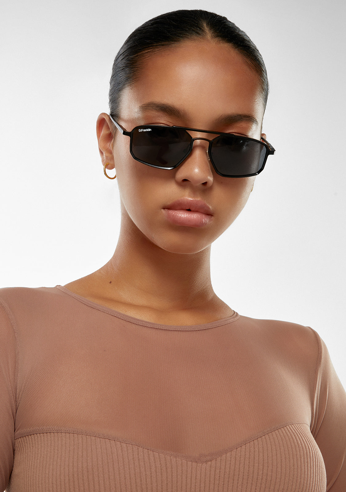 A renewed stamp inspired by high altitudes. This design connects with the essence of aviator style from the top. Transport yourself to the most intrepid places with its signature frame and smoked lenses. Reach the level, push the limits. MUNI LA D.Franklin unisex sunglasses.