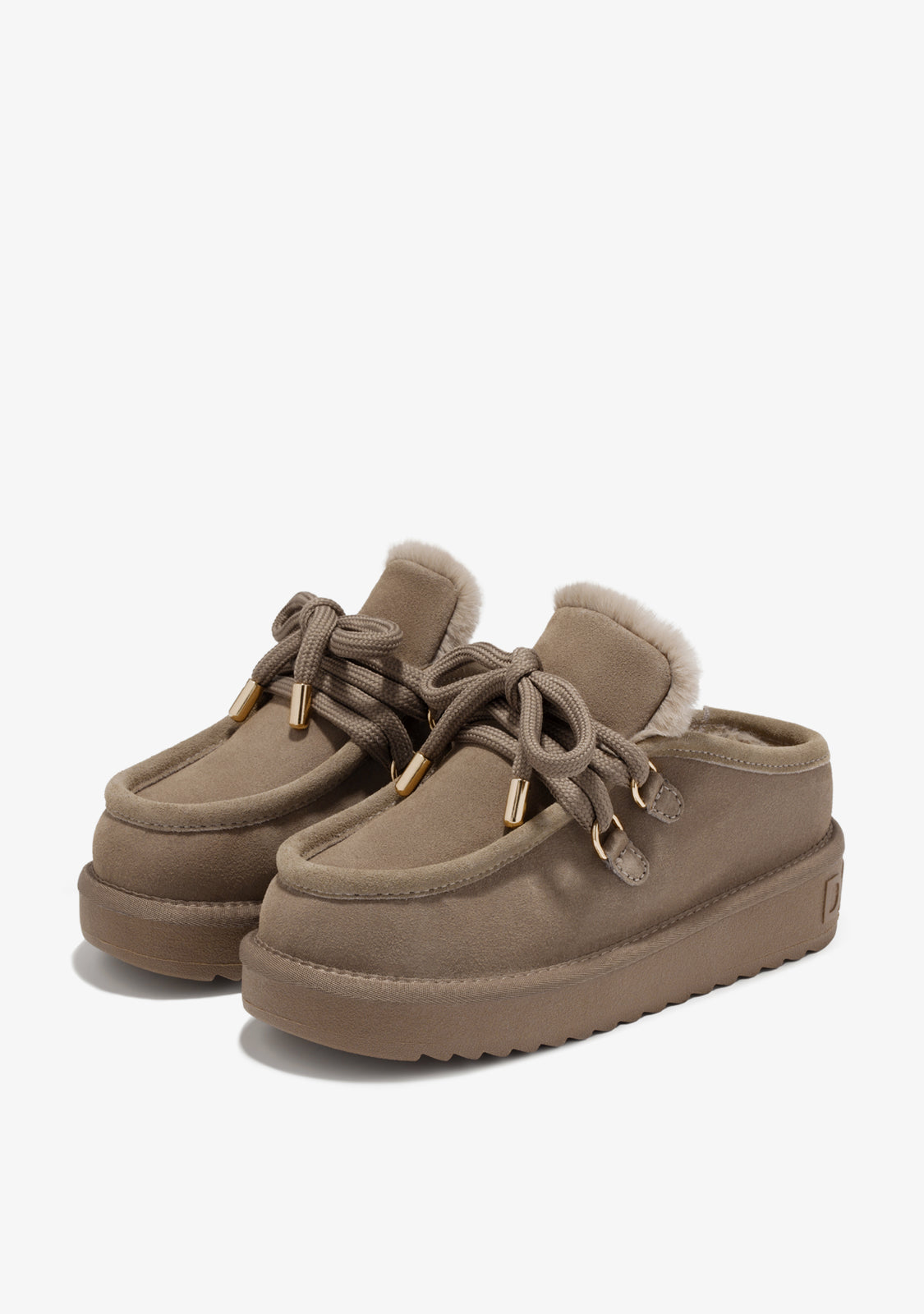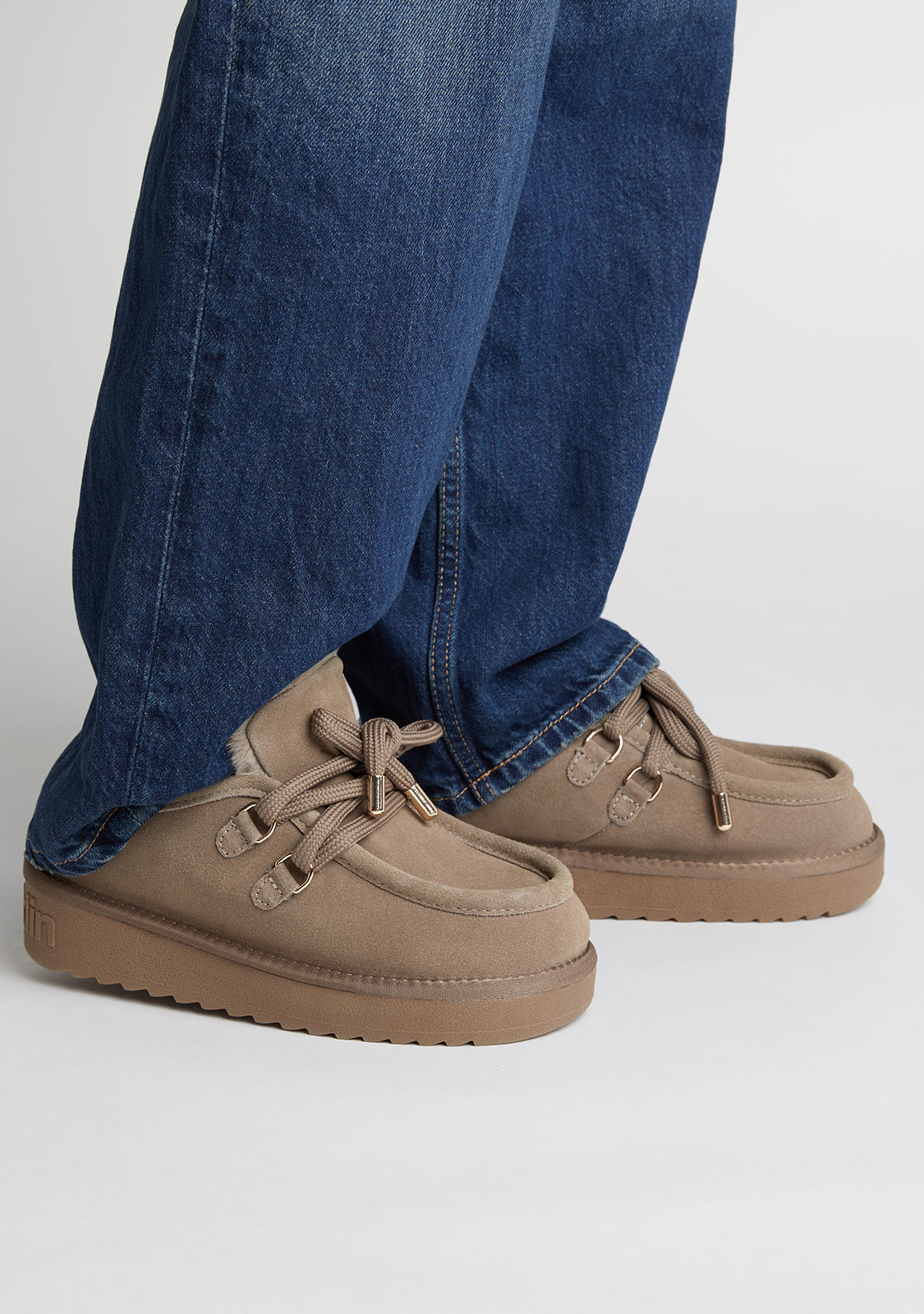 The Nordic Clog Taupe by D.Franklin offer a comfortable and functional design in a soft taupe tone, ideal for those seeking warm and versatile footwear. The 100% cow suede exterior provides softness and resilience, while the 100% polyester lining and 100% polyester insole ensure a comfort feel throughout the day.