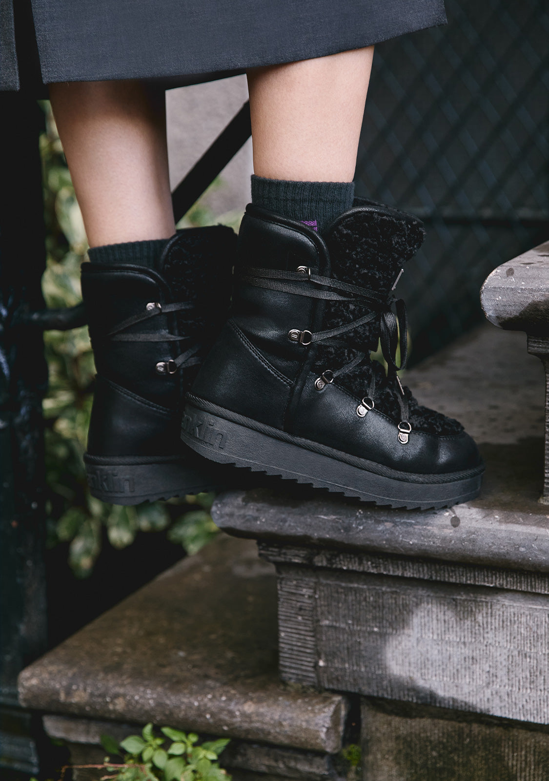 These black boots feature high-quality microfiber fabric. A redesigned sole provides a lighter weight for a more comfortable ride. It also features our custom heel badge. Multi-position mountain-style laces provide optimal support and reflective detailing. Plus, a faux fur lining adds the ultimate winter touch.