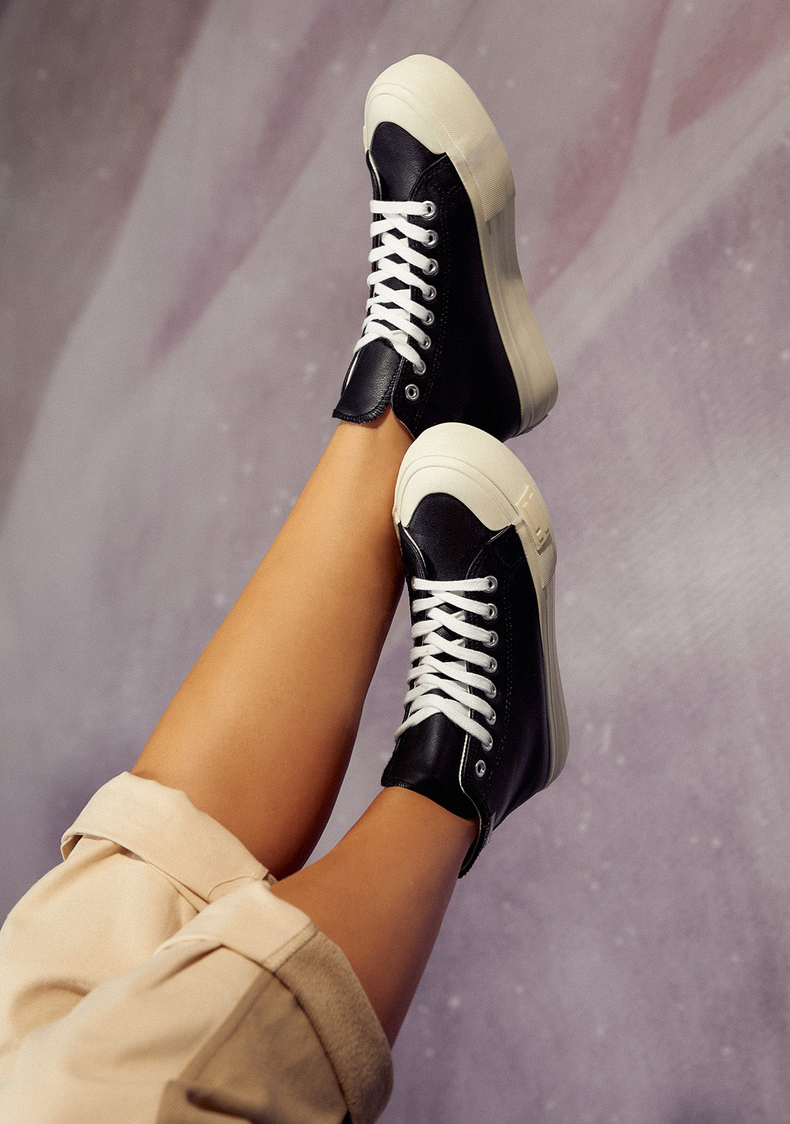 D.Franklin single-colour high-cut trainers. Sneakers with neutral tones and a relaxed aesthetic. A reminder that you can also follow the trend with a basic.