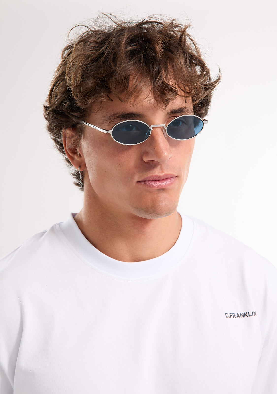 The Oval Legacy design features a metallic finish with a circular aesthetic. Its silver-tone frame is paired with blue anti-reflective lenses that allow a subtle view through and define the facial features. The front measures 135 mm, and the lens width is 51 mm. The temples are 140 mm long and incorporate our distinctive detailing. A retro yet minimalist piece to frame any outfit.