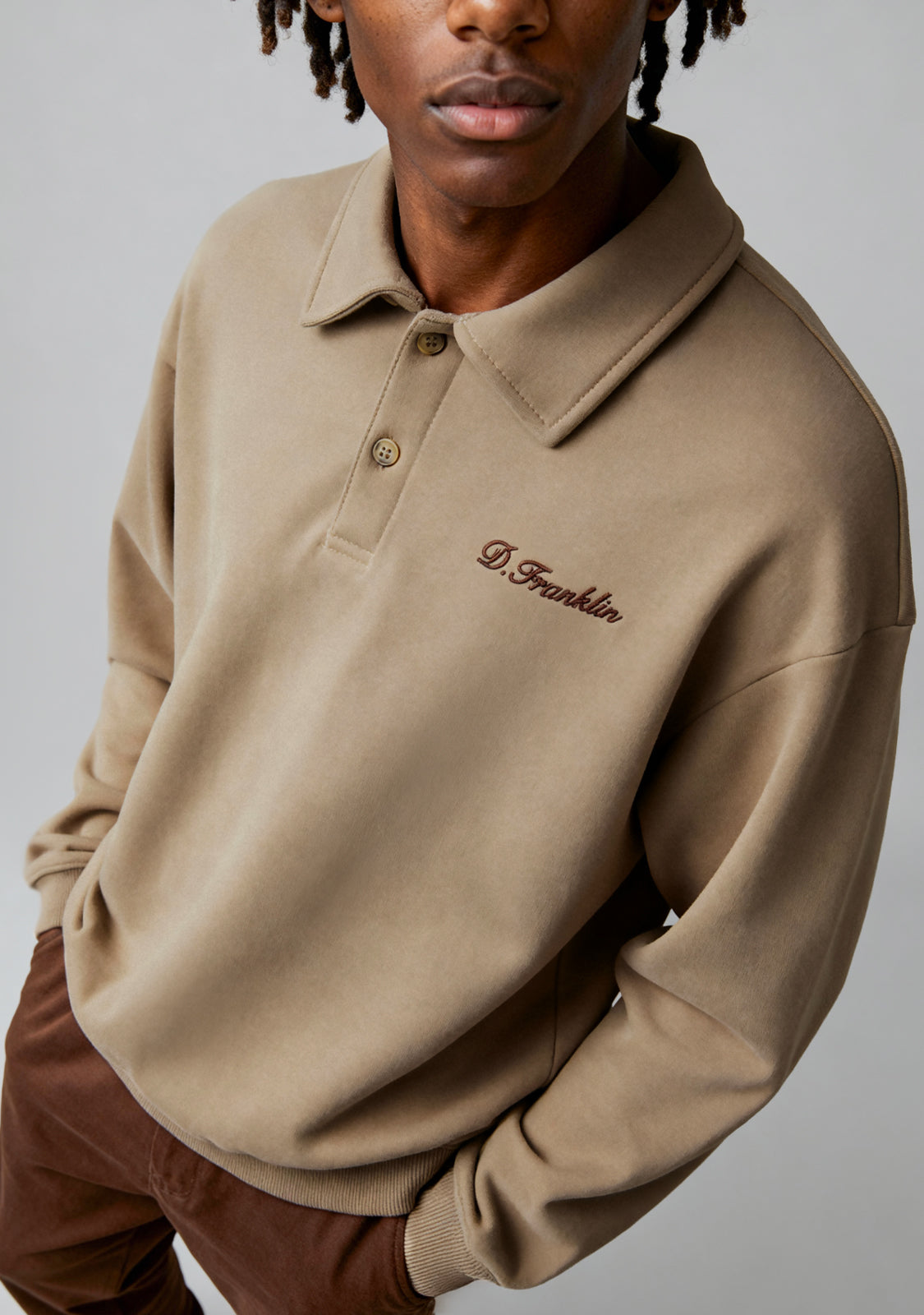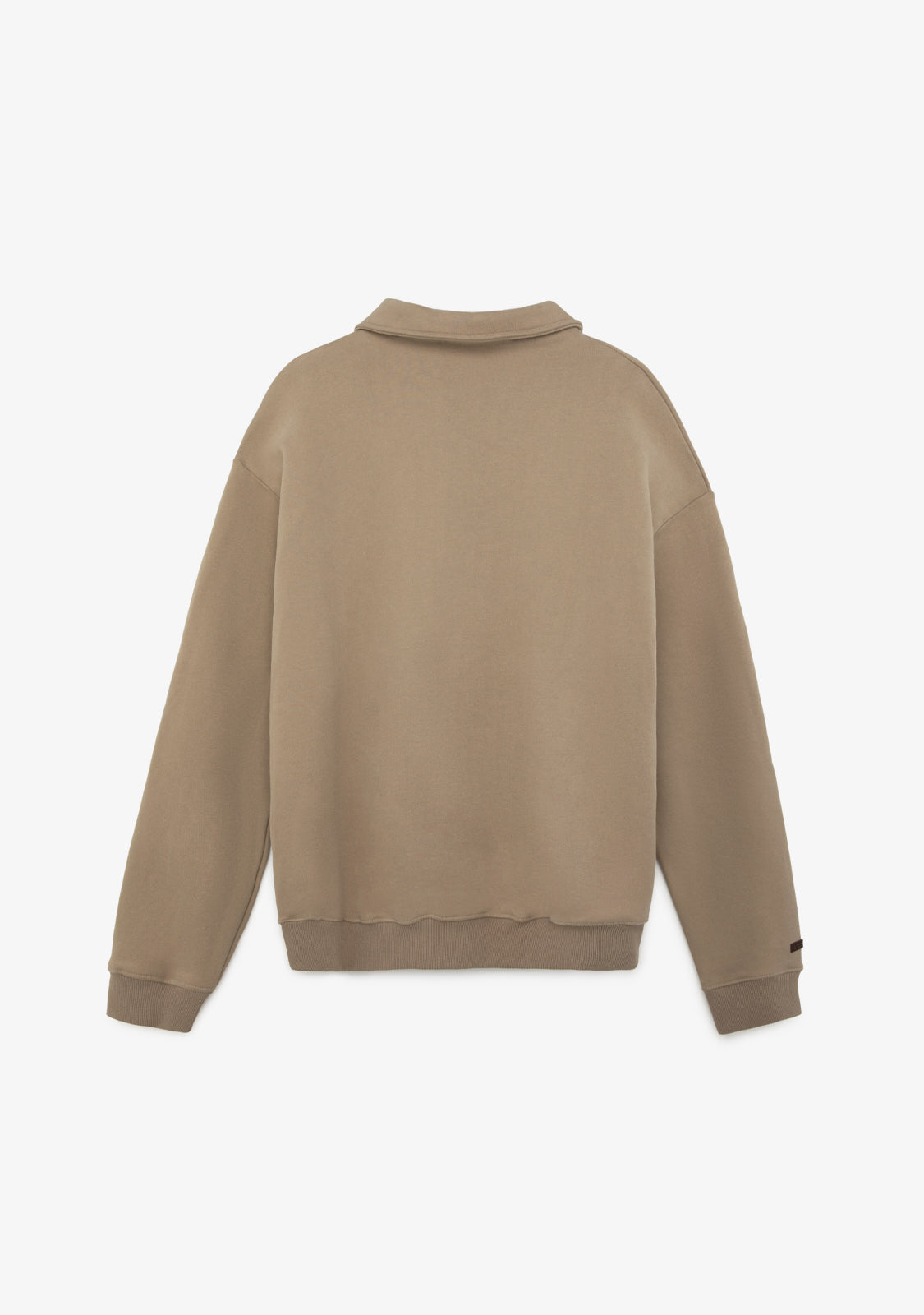 Polo Sweatshirt Sand is a unisex sweatshirt with a clean polo design. It’s an easy-to-wear essential that brings warmth to your everyday look.