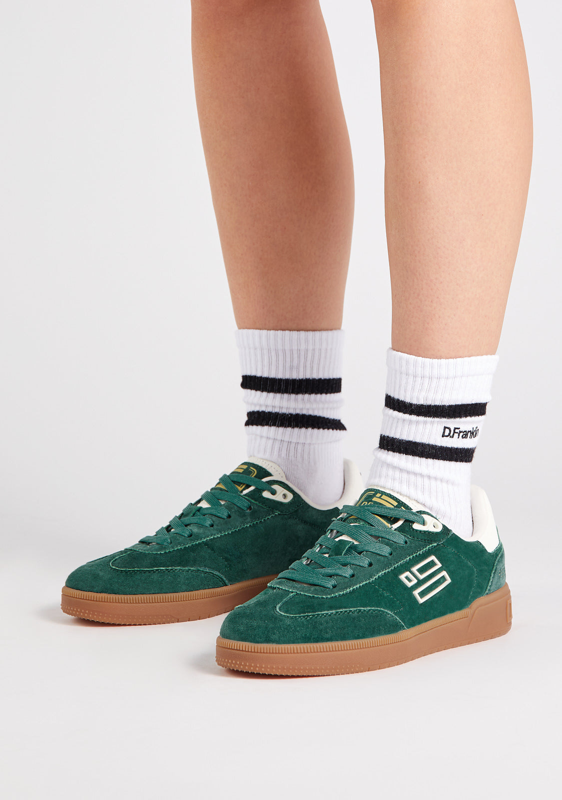 The Rebel D.Franklin frames a low-cut silhouette in shades of green. It features a selection of details that define its essence. It features an embossed logo on both the heel and sole, an embroidered flag on the side and the name of the design on the back. The 2cm rubber sole provides superior grip and traction.