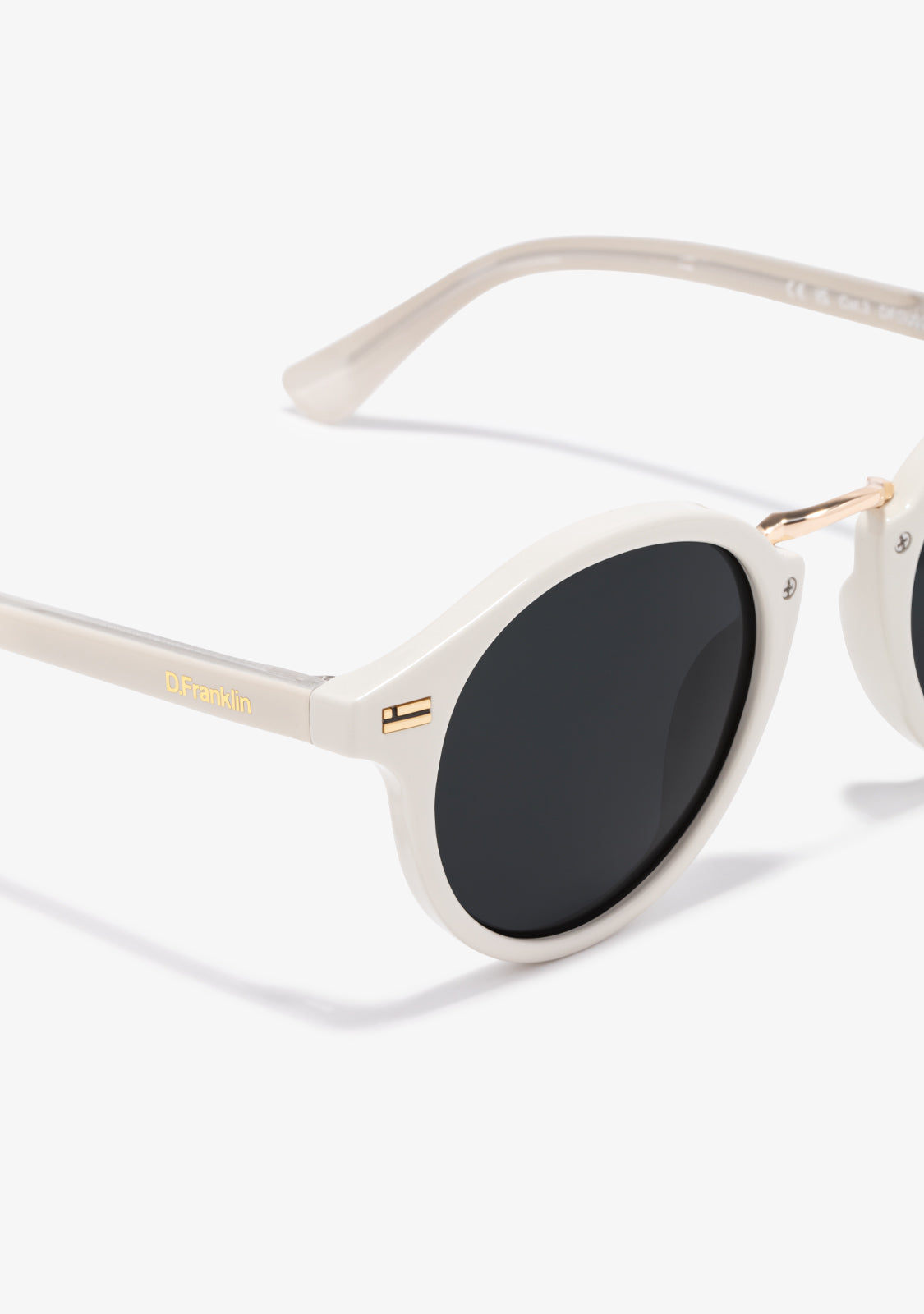 Rediscover our Roller silhouette with a new impeccably finished frame. This model is designed in white tones and features our signature D.Franklin details: logo engraved on both temples and our emblem on the right lens. The lens width is 49 mm and the front lens width is 140 mm. The side temples are 145 mm long.