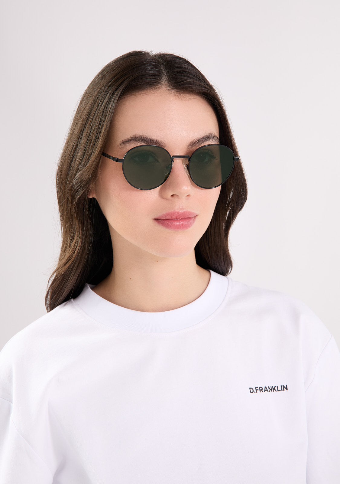 The Round Legacy design features a metallic finish with an oval aesthetic. Its black-tone frame is paired with G15 green anti-reflective lenses that allow a subtle view through and define the facial features. The front measures 139 mm, and the lens width is 52 mm. The temples are 140 mm long and incorporate our distinctive detailing. A retro yet minimalist piece to frame any outfit.