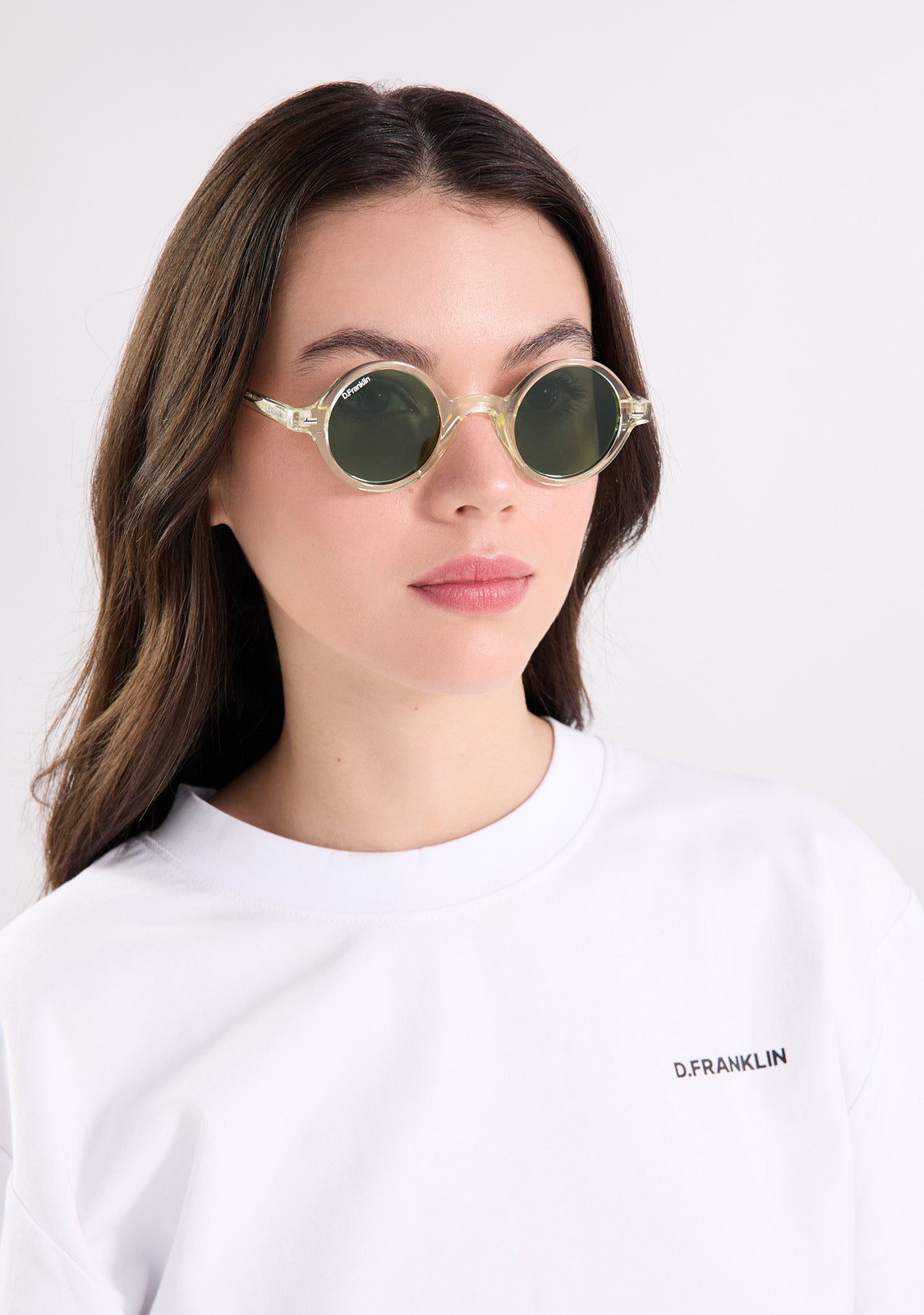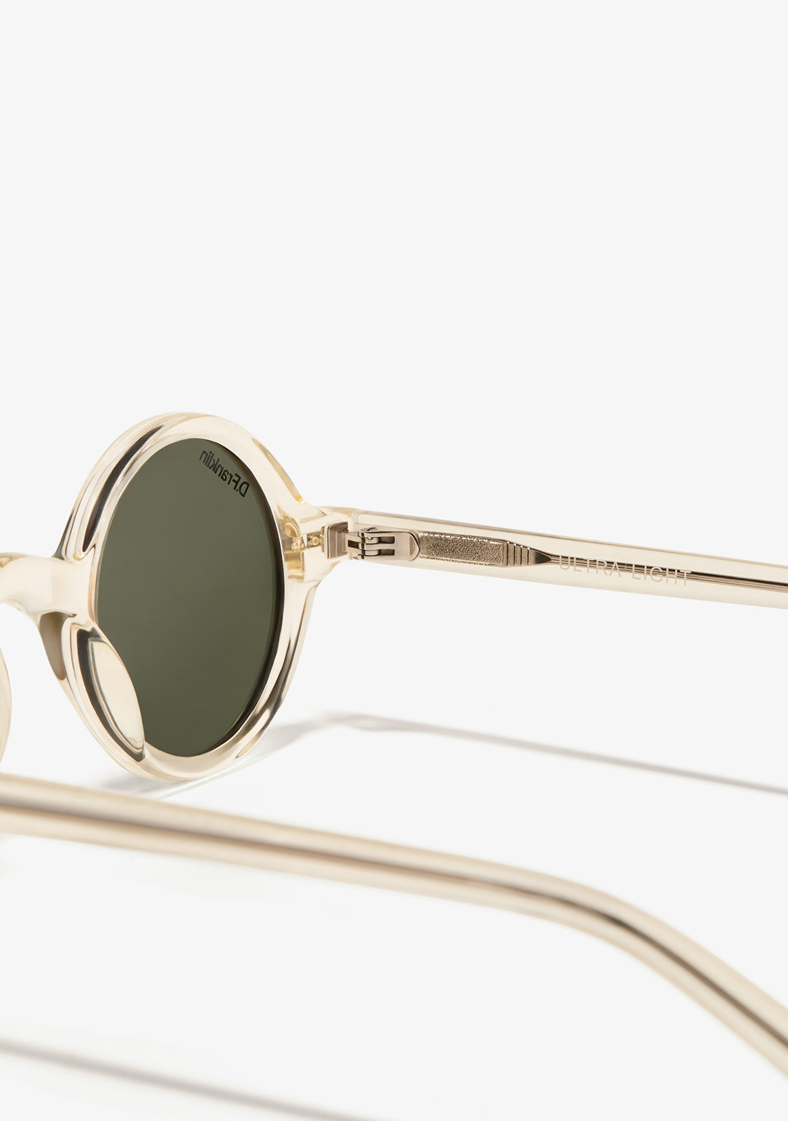 The Ultra Light Round Trans / G15 sunglasses by D.Franklin stand out for their minimalist design and superior functionality. With a TR90 front frame, these sunglasses combine lightweight construction and durability, making them ideal for extended wear. The acetate temples ensure a comfortable fit and an elegant finish.