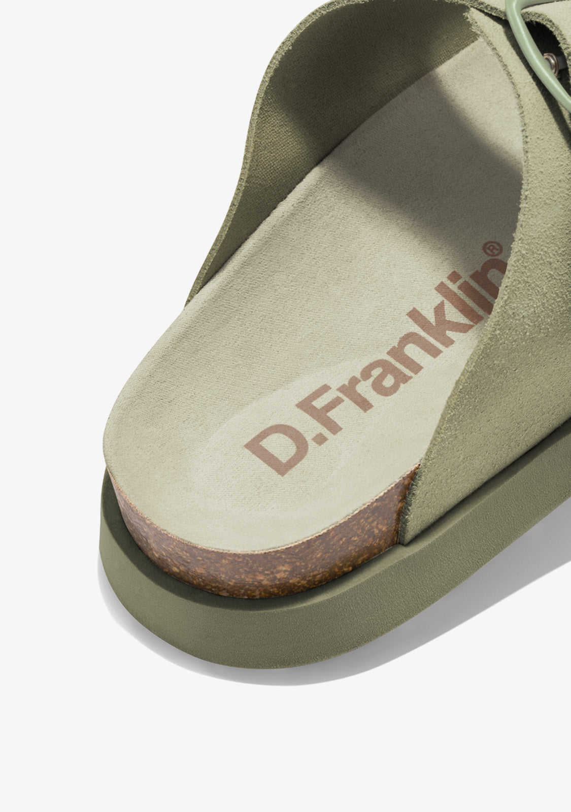 Discover the perfect combination of style and comfort with the Vibe Sandals Buckle Khaki by D.Franklin. Designed with a cow suede upper, these sandals offer a soft touch and elegant finish, perfect for complementing any look.